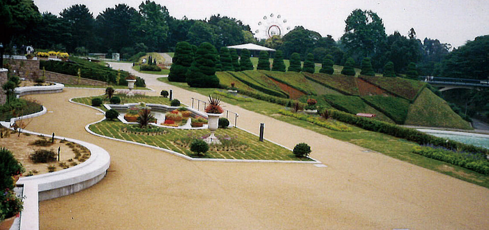 しかし、新しい施工技術の習得は一筋縄ではいかなかった。当時、経理業務とプラント管理を兼務していた担当者は、「ミキサーの洗浄などに非常に手間がかかりましたが、良い舗装を作るために皆で努力しました」と振り返る。また、NCコートは雨に極めて弱く、梅雨時期は施工が完全に停止するため、工期の調整にも苦労した。当時、施工を担当した若手社員にとって、入社間もない現場での作業は試練の連続だった。NCパーミックスは色合いの調整が難しく、現場での調整作業は困難を極めた。はままつフルーツパークの急勾配な管理用通路への施工では、高所での危険な作業に挑んだ。それでも一つひとつの現場で技術を磨き、経験を積み重ねていった。
