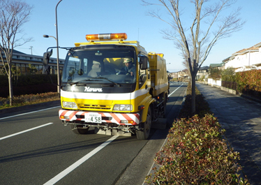 快適な通行ができるように、道路にあるゴミや落ち葉などを路面清掃車により清掃し、皆さんの街の美観を維持します。